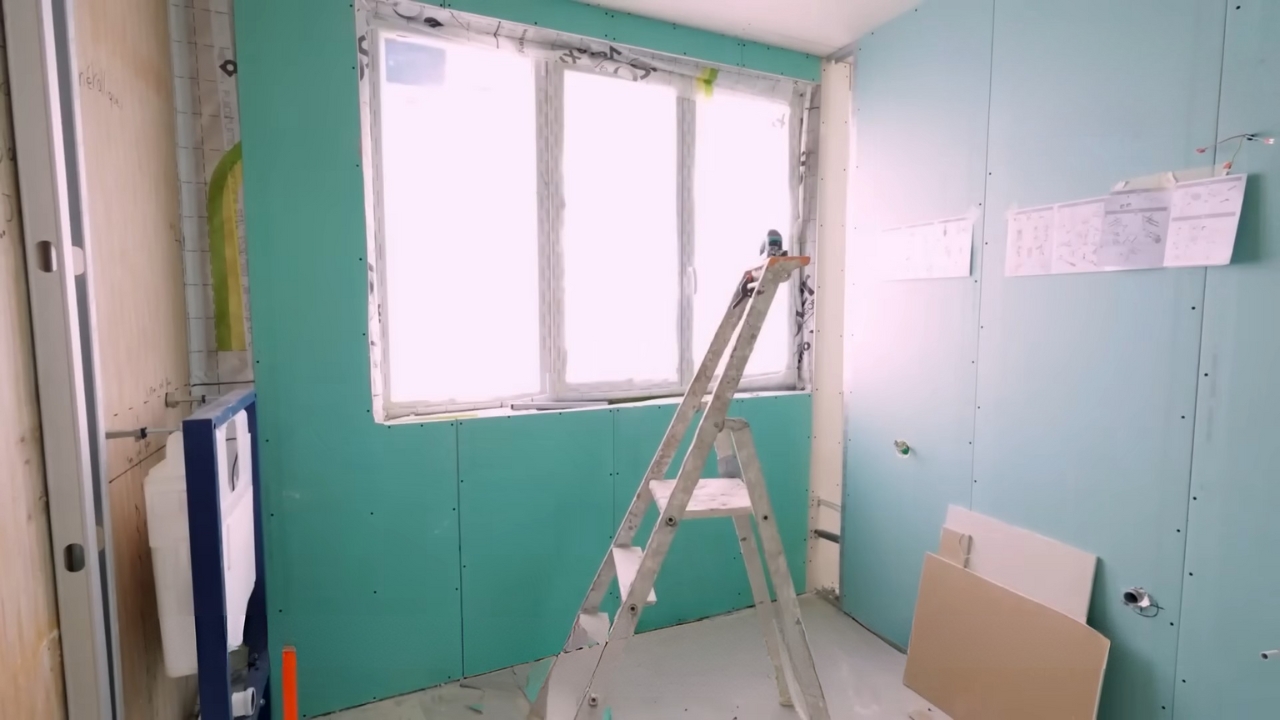 En las áreas húmedas, se utilizaron placas verdes hidrófugas, mientras que el resto recibió placas blancas estándar. Esta diferencia ayuda a proteger los puntos más sensibles de la casa.