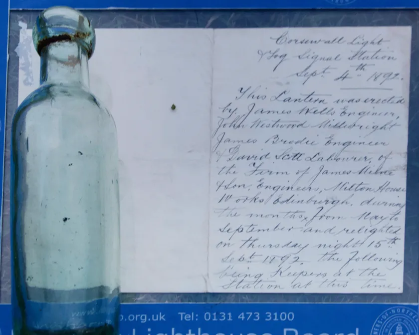 Una botella de 132 años fue encontrada dentro de las paredes de un faro escocés, conteniendo un mensaje que revela secretos e historias del pasado marítimo de la región