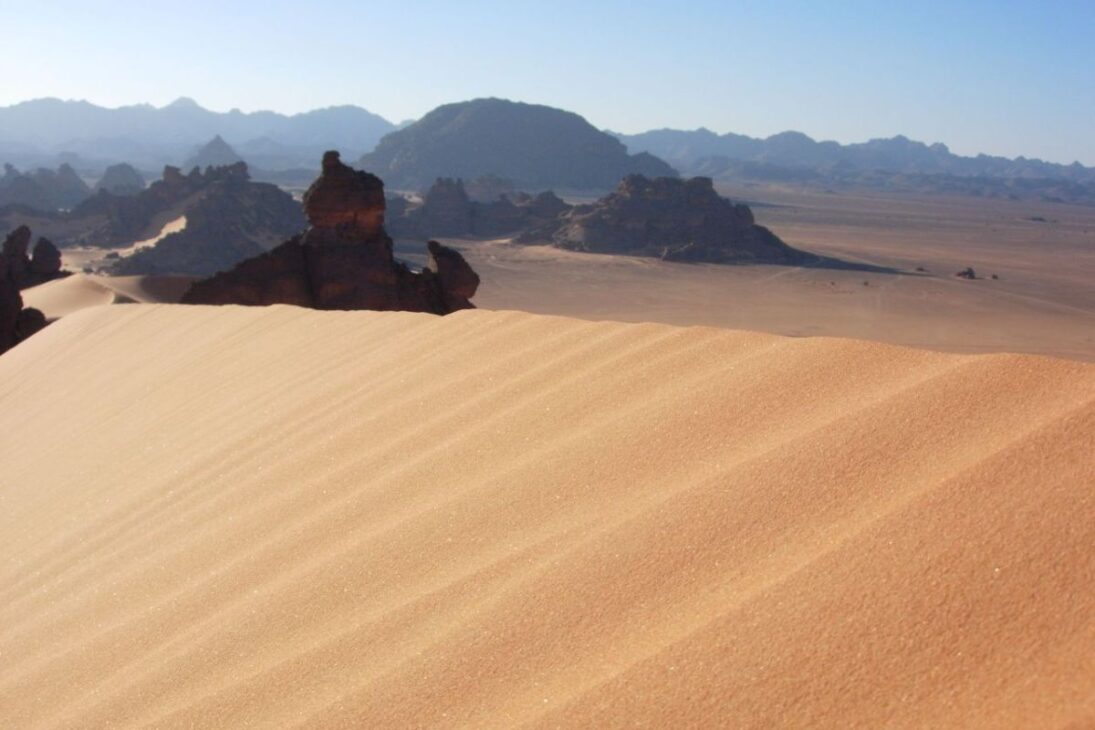 Libia está en la costa del Mediterráneo, pero eso engaña. Más del 90% del territorio está dentro del Desierto del Sahara, una de las regiones áridas más extremas de la Tierra, marcada por un calor intenso y un viento constante.