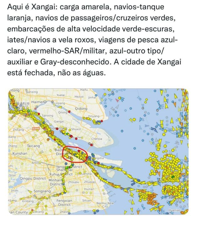 Como resultado, varios barcos quedan parados en el puerto de Shanghái esperando su turno para cargar mercancías o entregar a los compradores chinos. El resultado es que las empresas navieras están saliendo del mayor puerto del mundo y yendo a la próxima parada, en su mayor parte dentro de China. El puerto está funcionando con la mitad de su capacidad y las consecuencias de esto pueden verse en las imágenes de satélite que siguen a los barcos.