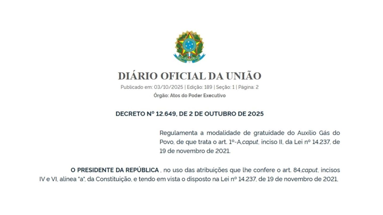 El presidente Luiz Inácio Lula da Silva oficializó, este jueves (2), a través del Decreto nº 12.649/2025, la reglamentación de la modalidad de gratitud del Auxilio Gás del Pueblo, programa social que garantiza la recarga gratuita de cilindros de 13 kg de gas licuado de petróleo (GLP) para familias en situación de vulnerabilidad.