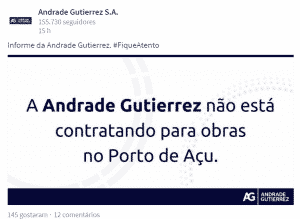 La Andrade Gutierrez También Hizo El Mismo Comunicado Avisando Que No Estaban Contratando. Circula Por La Red Un Supuesto Audio Del Sindicato Solicitando La Convocación De Trabajadores Para Enviar Currículos.