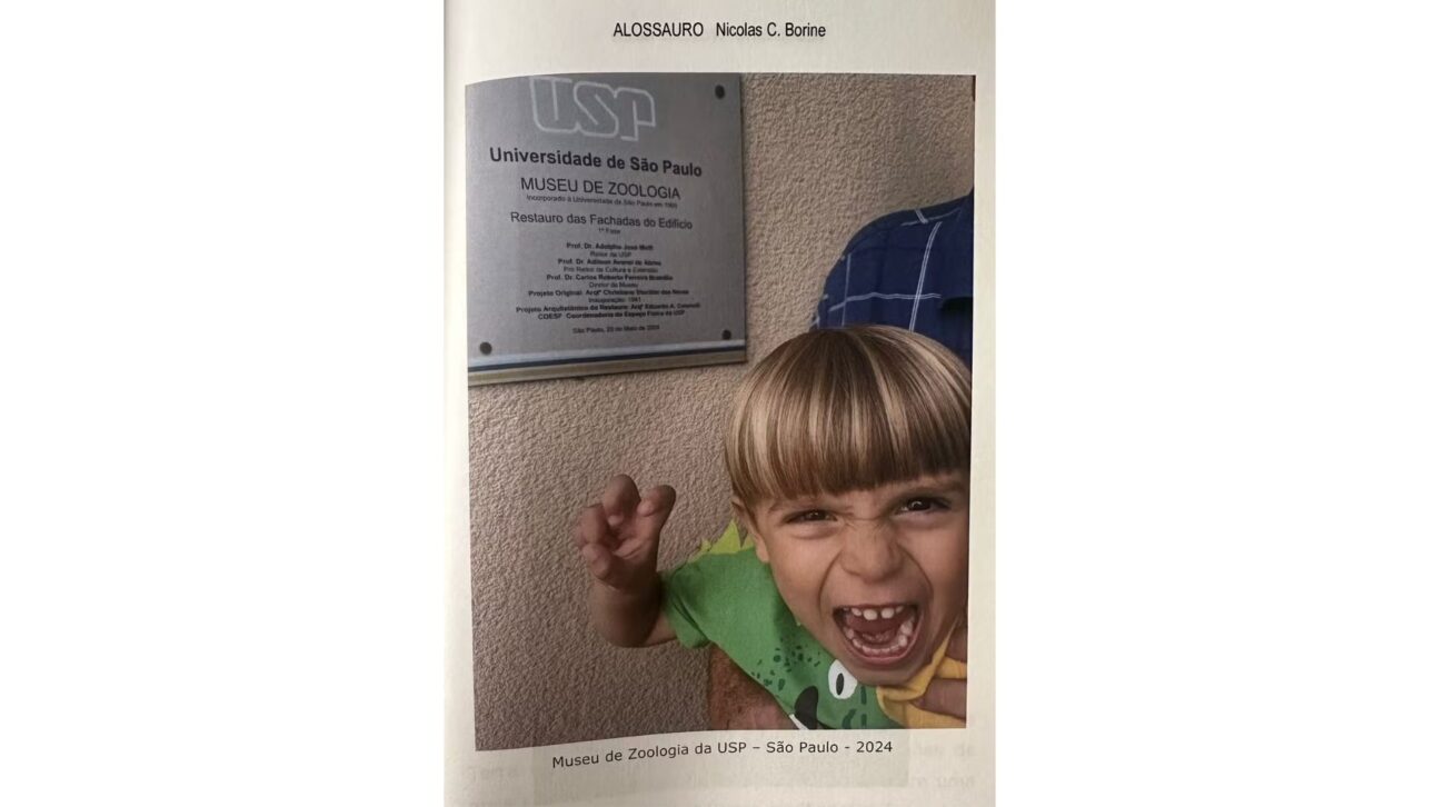 Nicolas Borine, de Atibaia (SP), escribió e ilustrou “Alossauro” a los 4 años y cinco meses y ahora aguarda evaluación oficial del Guinness World Record
