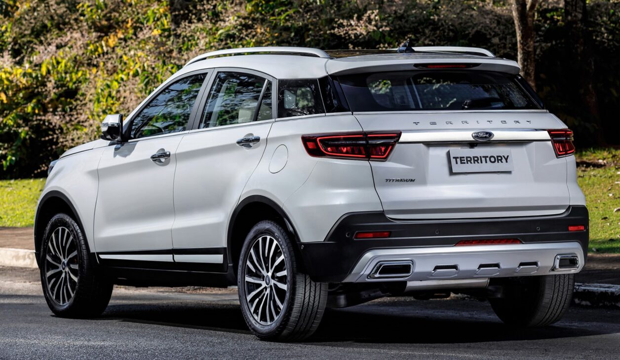 Cerrando la lista, tenemos el Ford Territory Titanium 2021, SUV importado de China que enfrentó resistencia en Brasil, pero entrega un paquete premium envidiable. Por fuera, los faros full LED, las ruedas de 18 pulgadas y la parte trasera ancha recuerdan a SUVs de lujo como el Evoque.