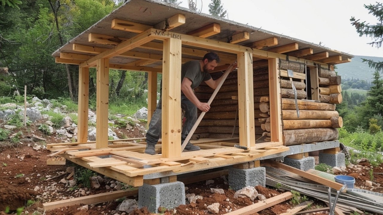 Hombre pasa 100 días construyendo cabaña de madera en isla volcánica y transforma bosque hostil en refugio completo con aislamiento contra el frío, área de cultivo y estructura hecha con recursos naturales.