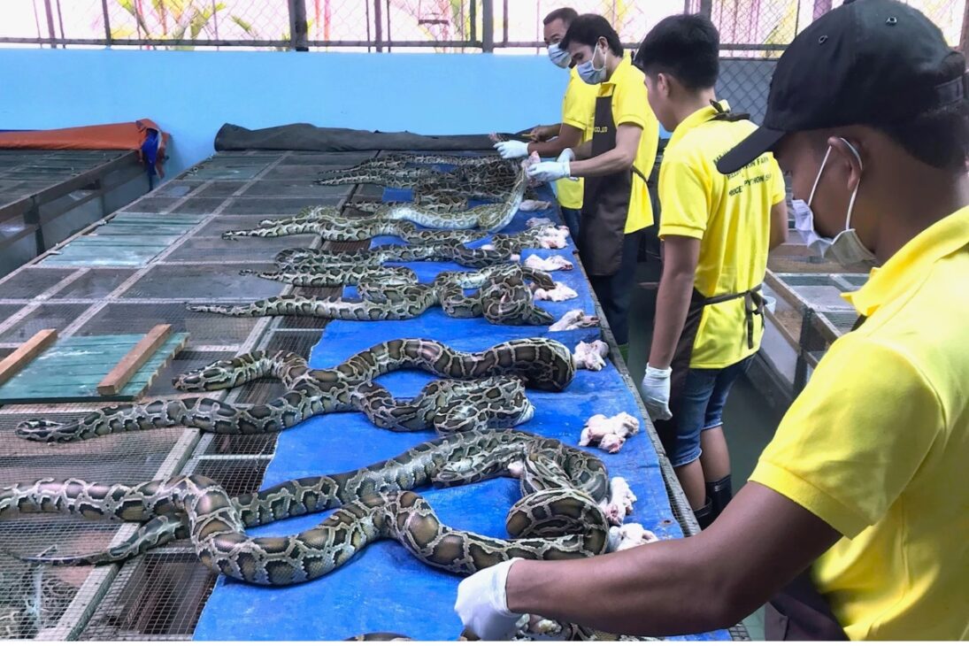 Granjas en el sudeste asiático crían millones de pitones en ambiente controlado, con producción orientada a la carne y cuero y un impacto directo en el comercio internacional