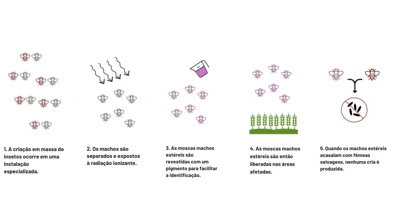 Este método se ha utilizado con éxito en la lucha contra la mosca del berne (Cochliomyia hominivorax), una plaga temida en la ganadería. Las larvas de este insecto se alimentan de carne viva en heridas abiertas, pudiendo causar infecciones graves e incluso la muerte de bovinos y caprinos. La técnica ya se ha aplicado en áreas rurales del Norte y Nordeste de Brasil, con el apoyo de UNESP, Embrapa y agencias internacionales como la FAO/IAEA.