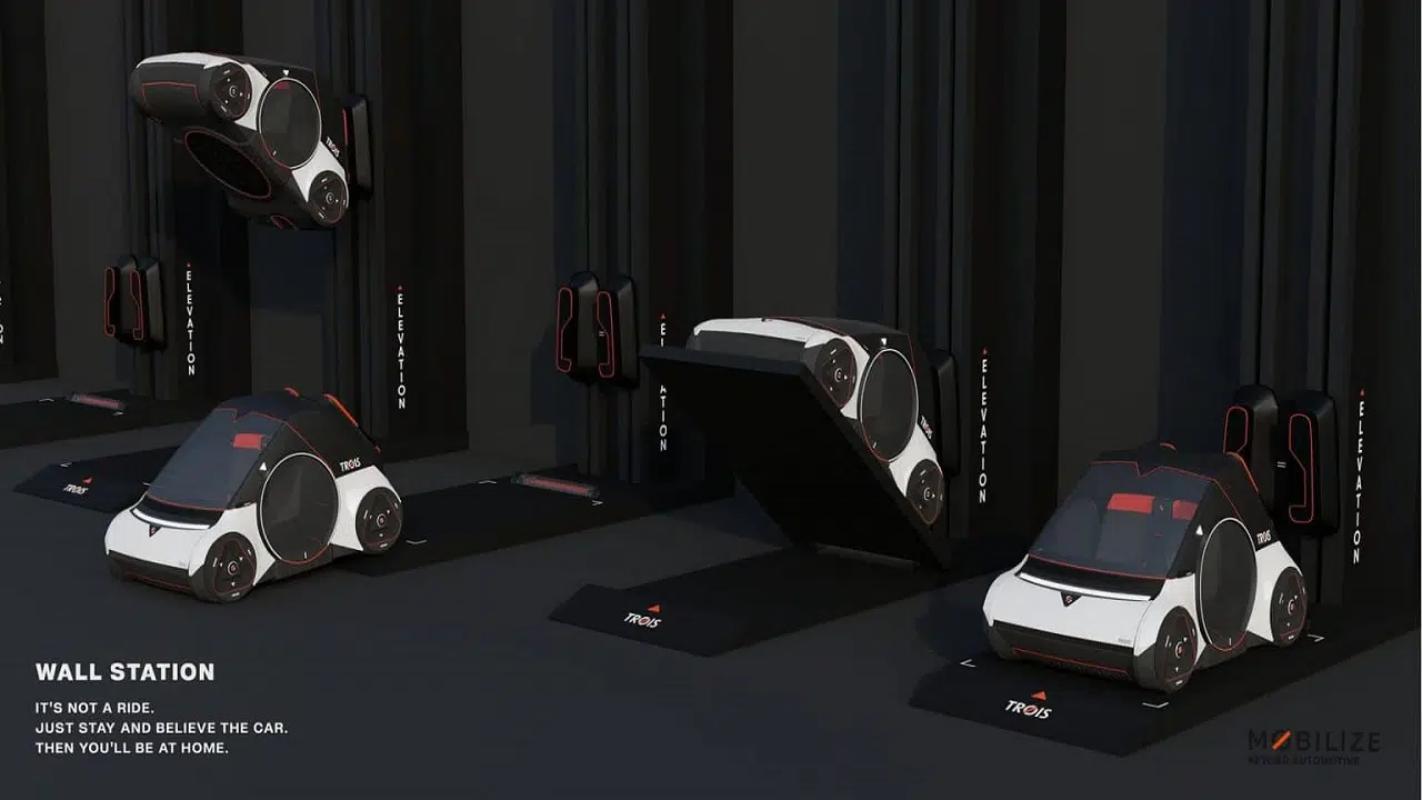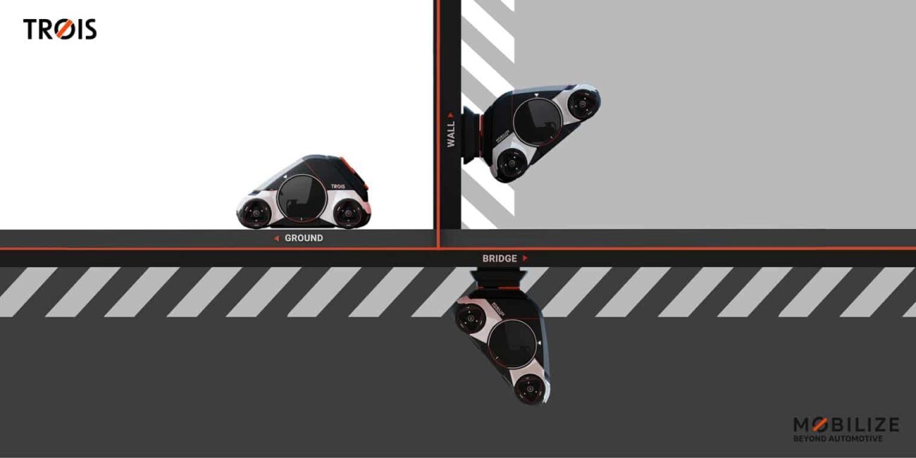 El Coche Eléctrico Del Futuro Se Llama Trois, Que Significa «tres» En Francés, Y El Nombre Fue Elegido De Forma Muy Intencional, Ya Que El Minicarro Puede Alternar Entre Tres Modos De Conducción: Suelo, Pared Y Puente. Para Poder Subir Y Bajar En Las Paredes Y Bajo Los Puentes, Trois Utiliza Energía Magnética.
