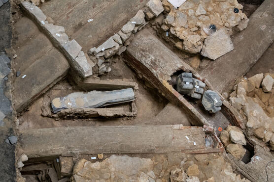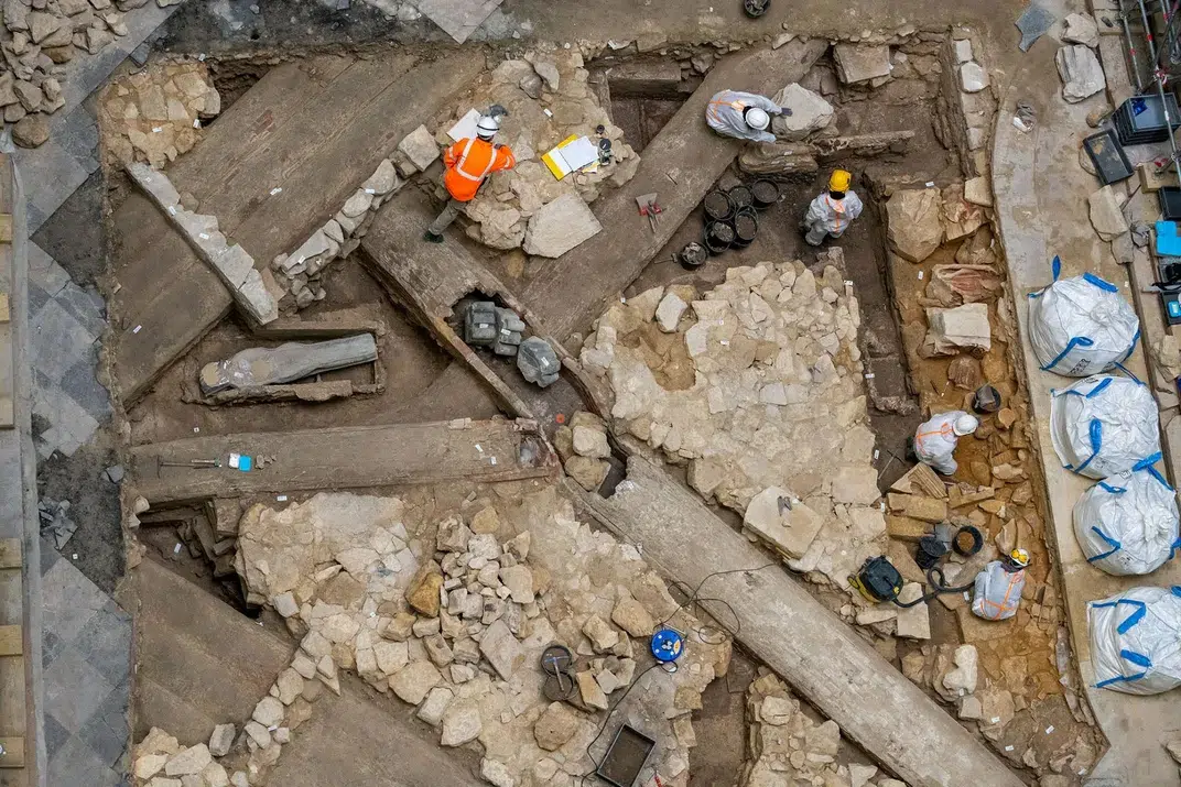 Además del descubrimiento de los ataúdes, las excavaciones en Notre-Dame después del incendio de 2019 también revelaron más de 1.000 fragmentos de la tela de la cruz de la catedral, un elemento arquitectónico medieval que separaba el coro de la nave.