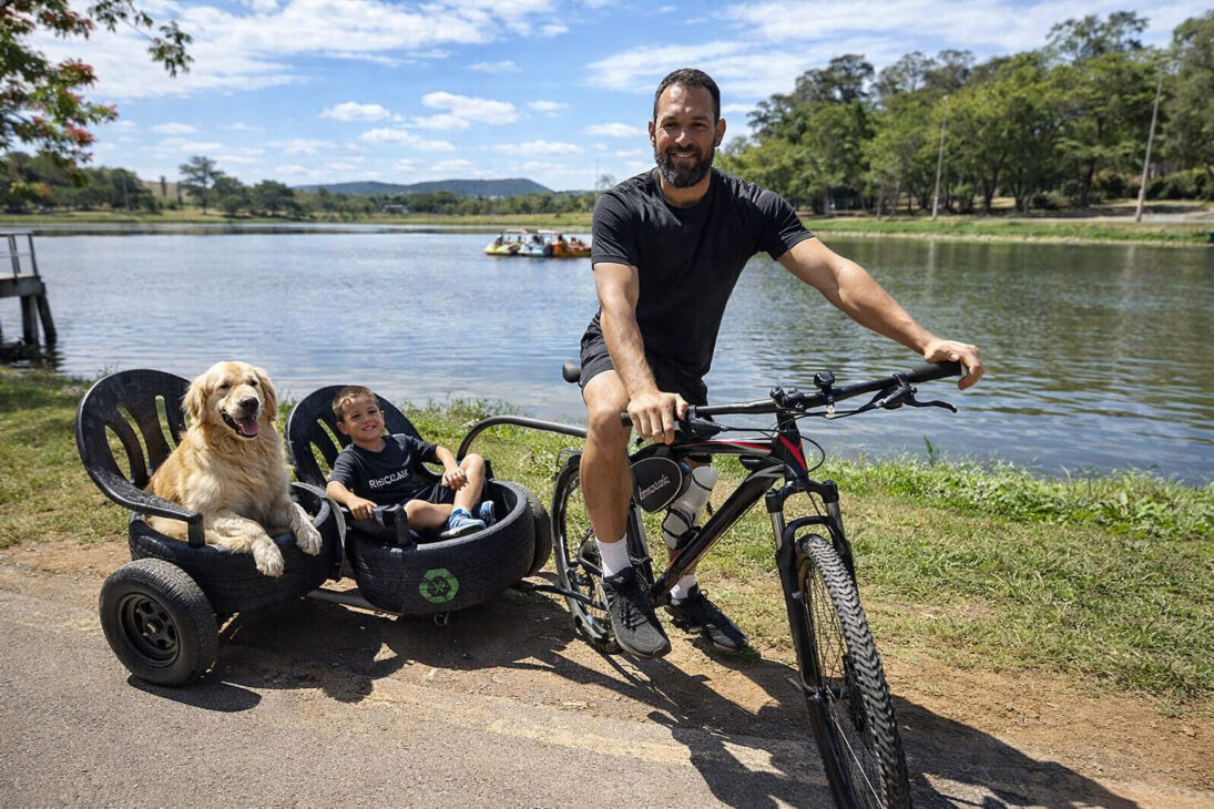 El protagonista de la historia es Patrick Veloso, técnico de informática y residente de Montes Claros. Decidió adaptar un remolque para bicicleta con un objetivo claro: vivir experiencias al lado de su hijo Ethan, de 5 años, e incluir también al perro de la familia, Rocky, un golden retriever.