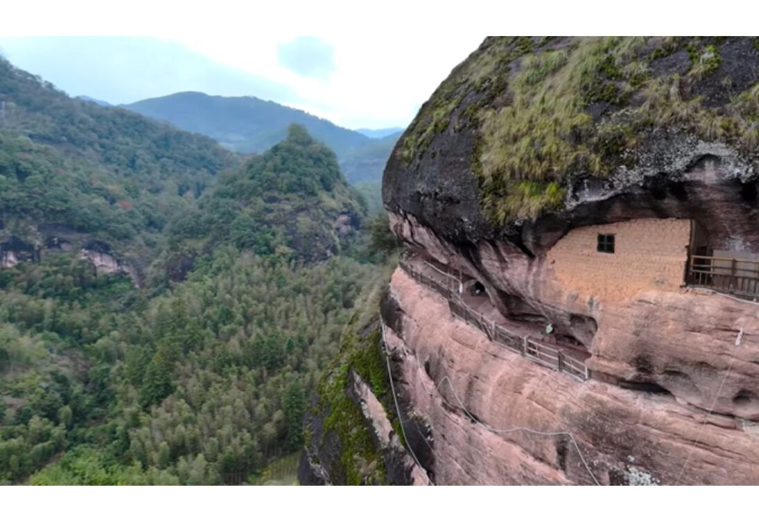 Ubicada en Taining, en la ciudad de Sanming, provincia de Fujian, la comunidad se encuentra a unos 50 minutos en coche de la zona urbana y requiere una subida de aproximadamente 30 minutos desde la base de la montaña, en un trayecto considerado no muy empinado. Según los relatos, el lugar existe desde hace más de mil años y fue descubierto a partir de una larga hendidura en la roca, transformada poco a poco en pasarela y casas que sirvieron de refugio en tiempos de guerra y conflictos.