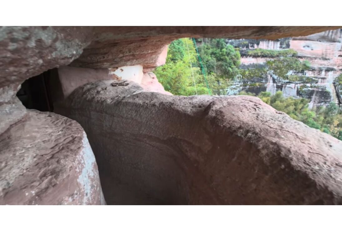 Habitantes que viven en lo alto de una montaña remota, caminando diariamente por un pasarela fijada en el acantilado, transformaron una hendidura de roca en refugio de silencio, agua de manantial y cuevas naturales. Los habitantes y visitantes cruzan un camino estrecho suspendido sobre el vacío, rodeado de pendientes verticales y por un paisaje que recuerda un santuario esculpido por la montaña misma.