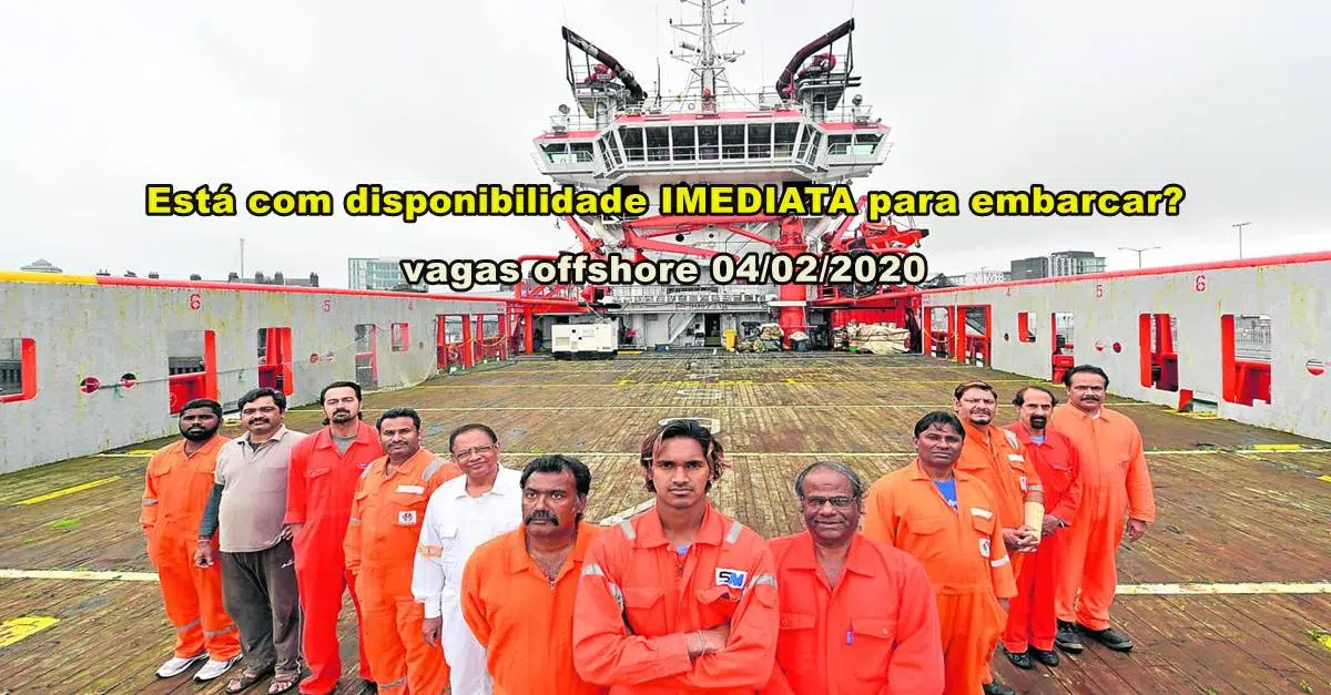 12 ofertas de empleo para profesionales marítimos, los candidatos deben estar en conformidad y con los debidos certificados al día para trabajar offshore. Las oportunidades fueron anunciadas en la tarde de ayer, 03 de febrero, por la empresa de Recursos Humanos Winner RH. Ofertas de empleo para soldadores y mecánicos destinadas a proyectos y obras en empresa de ingeniería
