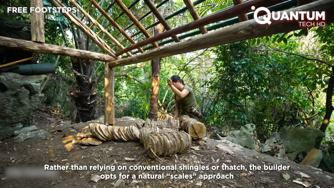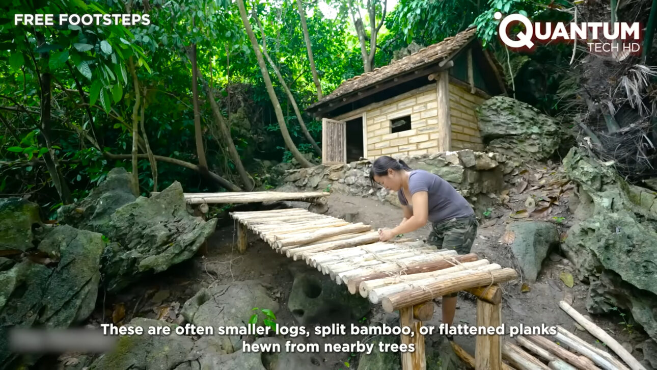 Al final, lo que se ve no es una cabaña improvisada, sino un refugio funcional erigido enteramente a partir de los recursos disponibles en el bosque. No hay desperdicio, no hay dependencia externa, no hay ruptura con el entorno. Cada decisión constructiva responde directamente a las condiciones del terreno, al clima y a la disponibilidad de materiales.