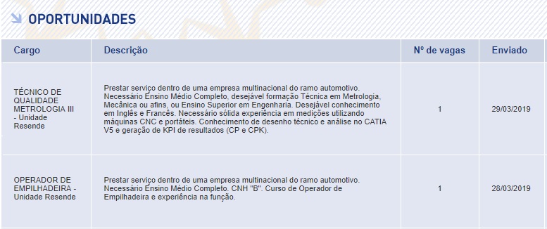 Multinacional en Resende solicita profesionales para el sector automotriz, vacantes anunciadas 03 de Abril.