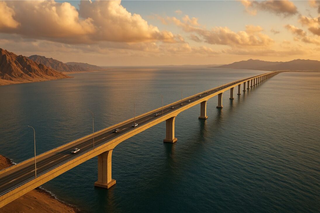 Confirmado por autoridades de Egipto y Arabia Saudita en el primer semestre de 2025, el proyecto cruzará el Estrecho de Tirán, un punto estratégico del Mar Rojo. Con financiación total de la monarquía saudita, el costo estimado de la obra es de US$ 4 mil millones. La estructura tendrá entre 14 y 32 kilómetros, dependiendo del trazado final aprobado por los organismos ambientales y diplomáticos de los dos países.
