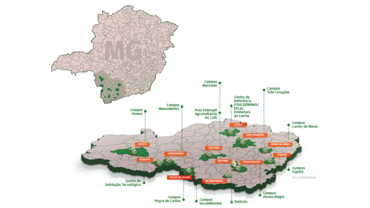El IFSULDEMINAS organiza las clases a partir de sus campus y polos distribuidos en decenas de municipios. Así, el alcance de la iniciativa supera los límites físicos de las unidades tradicionales.