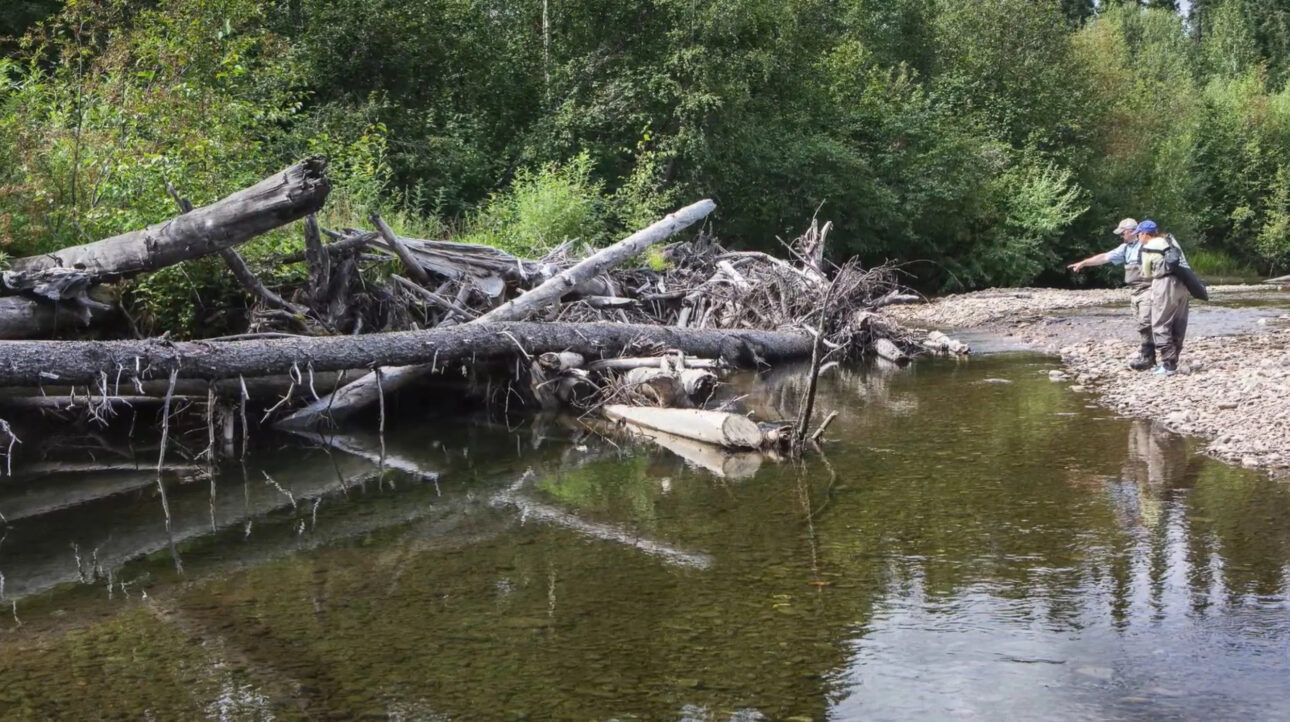 - Remansos profundos: troncos desvían la corriente, excavando áreas donde el agua es más lenta y profunda — ideal para truchas y salmones jóvenes descansar.