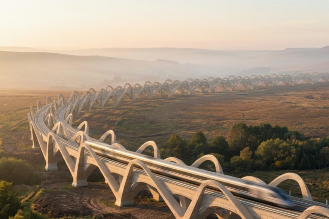 “Gran Bretaña necesita una visión que pueda entusiasmar al país y regenerar la economía”, dice él. Al someter el plan para la exposición de verano de 2026 de la Royal Academy, el arquitecto busca retomar el papel provocador de la arquitectura en la construcción del futuro. Si se aprueba y se ejecuta, el tren de alta velocidad dejará de ser solo un medio de transporte para convertirse en el motor de una nueva era de cooperación económica y sostenible en las islas británicas.