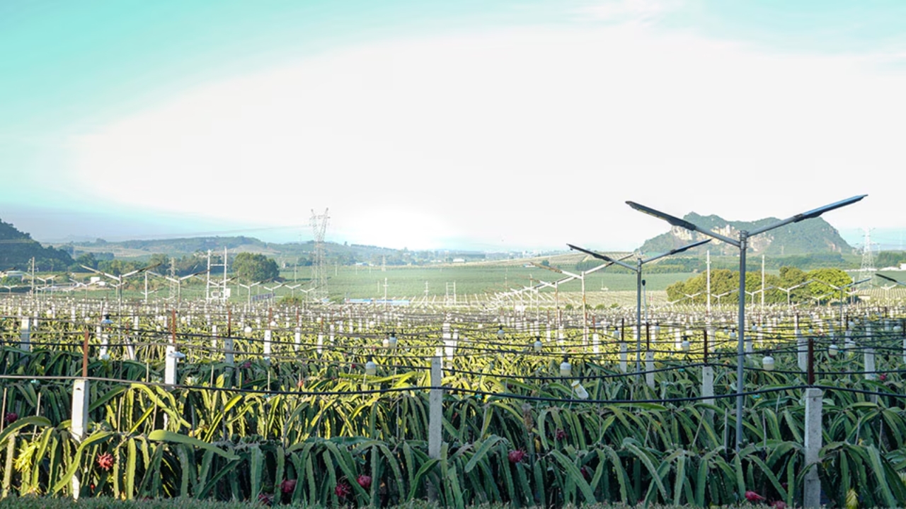La fruta del dragón necesita temperaturas entre 6 °C y 35 °C para desarrollarse en condiciones ideales. La Jinfu Farm instaló un sistema automático de control de temperatura: en verano, aspersores enfrían las plantas con neblina de agua; en invierno, calefactores mantienen el intervalo térmico adecuado. Gracias a este control, las plantas producen frutos durante unos diez meses al año, elevando significativamente la productividad anual.