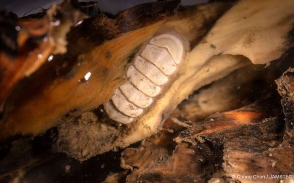 Además de su armadura inusual, el chitón posee una rádula reforzada con hierro, una lengua raspadora especialmente adaptada para alimentarse, y una comunidad de pequeños gusanos viviendo cerca de su cola, alimentándose de sus residuos — un ejemplo sorprendente de la complejidad microecológica incluso en ambientes extremos.