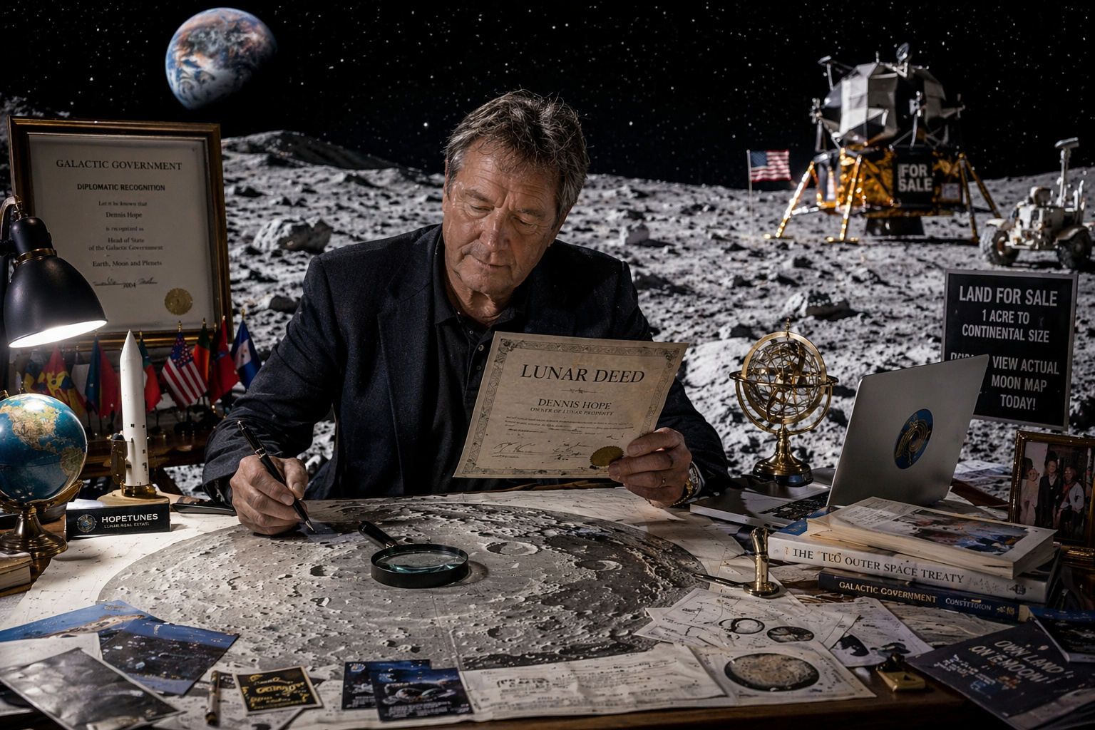 Él vio una brecha en el tratado espacial de 1967 y afirma haber ganado millones vendiendo terrenos en la Luna y en otros planetas.