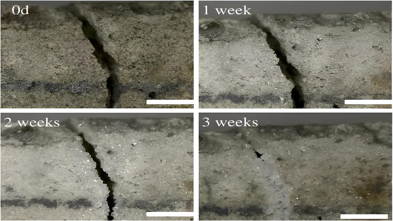 Las primeras pruebas de campo se realizaron en 2019, en puentes y pasarelas en los Países Bajos, y los resultados fueron alentadores. El concreto regenerativo selló completamente fisuras de hasta 0,8 milímetros de grosor en solo 28 días, incluso bajo variaciones de temperatura y humedad.