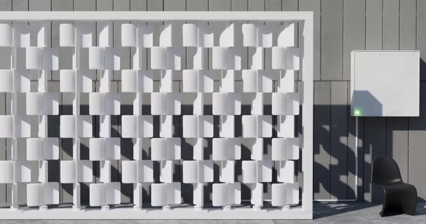 Según el diseñador, la pared discreta de turbinas eólicas puede esconderse a la vista de todos y producir más de 10.000 kWh al año, suficiente para alimentar una casa estadounidense.