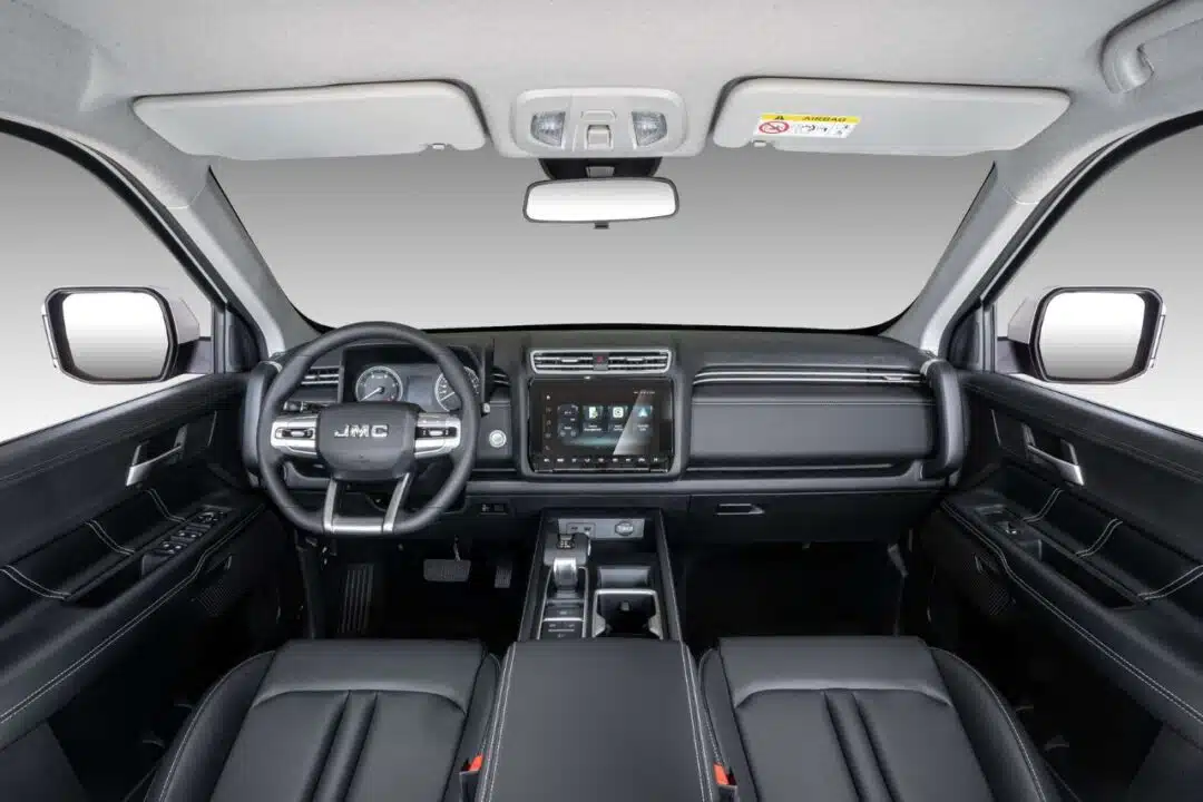 Los dos motores de la nueva pickup china son de la familia Puma de Ford, ya que la marca norteamericana es dueña de cerca del 30% de JMC. Independientemente de la motorización, la pickup movida a GNV puede tener caja manual de seis marchas de Magna o automática de ocho velocidades de ZF, con opción de tracción 4×2 o 4×4. Ambas tienen capacidad de carga superior a una tonelada y pueden remolcar 3,5 toneladas.