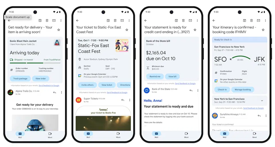 Según Forbes, desde la semana pasada, Google comienza a lanzar los llamados «tarjetas de resumen«, un recurso dinámico que organiza y muestra información relevante directamente en la bandeja de entrada, haciendo que la experiencia de uso de Gmail sea aún más eficiente.