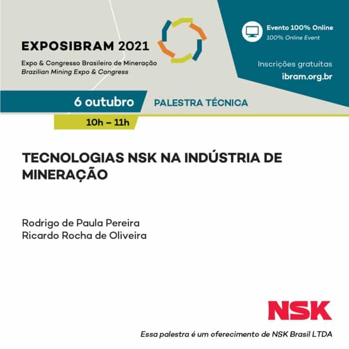 La NSK, referencia en rodamientos, participa de la Exposibram 2021, evento marcado para ocurrir en línea entre los días 5 y 7 de octubre, donde presentará nuevas tecnologías orientadas a la industria de minería en una charla técnica, el día 6/10 (miércoles) de 10 a 11h. Además del espacio en la agenda de contenido, la empresa también tendrá un stand virtual, donde un equipo comercial estará disponible para explicar los beneficios y diferenciadores de productos y servicios.