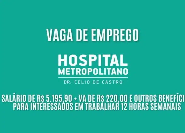 El Hospital Metropolitano Dr. Célio de Castro, referencia en atención 100% SUS en Belo Horizonte, está contratando profesionales para actuar como Médico(a) de Medicina Intensiva Adulto. La oportunidad incluye salario competitivo, beneficios exclusivos y una estructura de punta para atención humanizada.