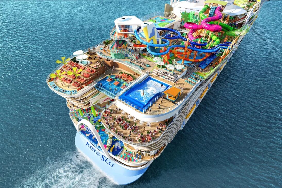 El Icon of the Seas es oficialmente el mayor crucero del planeta, superando en tamaño incluso al legendario Titanic. Con capacidad para más de 7.600 pasajeros y 2.350 tripulantes, el barco puede recibir alrededor de 9.950 personas a bordo. Su peso bruto de 250 mil toneladas (GT) lo coloca en la cima de la lista de los mayores barcos jamás construidos en la historia.