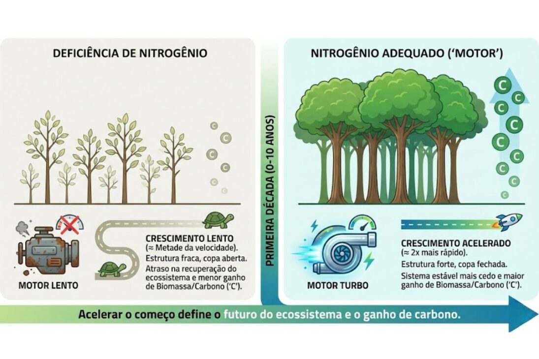 El punto más fuerte del estudio está en el timing. Durante los primeros 10 años de recuperación, los bosques con nitrógeno adecuado avanzaron a una velocidad aproximadamente dos veces mayor que aquellos con deficiencia del nutriente.