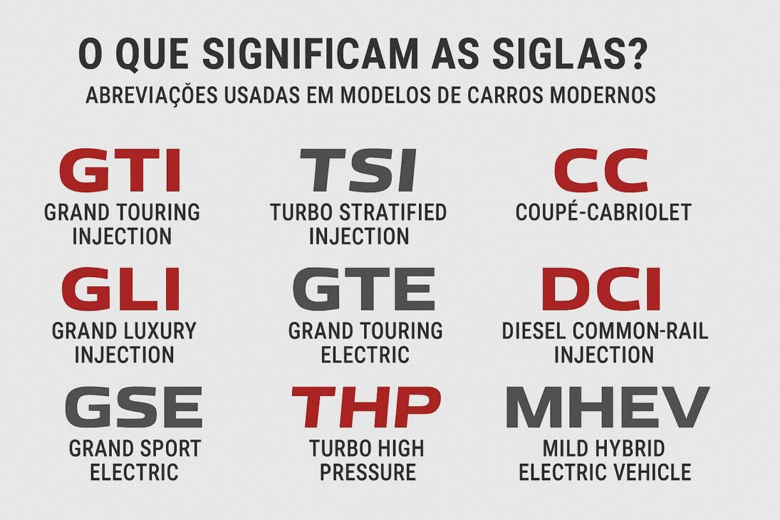 A continuación, ve el significado de las principales siglas de coches modernos, con un enfoque especial en las palabras clave GTI, TSI y CC.