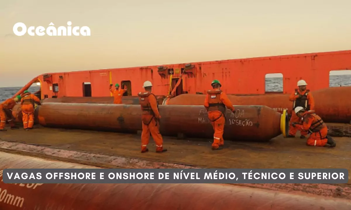 Oceánica está en búsqueda de nuevos profesionales en los sectores offshore y onshore, para cargos como abogado, electricista, cocinero y operador de ROV. Para trabajar con esta empresa de petróleo y gas, solo tienes que buscar la vacante deseada y hacer tu inscripción a través de su propio sitio, ¡haciendo clic aquí!