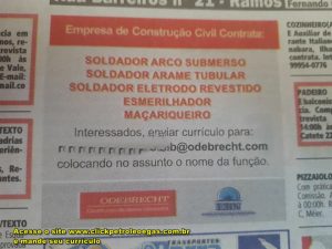 El segmento de construcción civil de Odebrecht sufrió un profundo golpe pero supo recuperarse y ha logrado cerrar algunas obras. La más reciente fue anunciada el día 12 de marzo de 2018 en un periódico de clasificados para contrataciones inmediatas con correo electrónico directo. Veamos cuáles son las vacantes justo abajo: