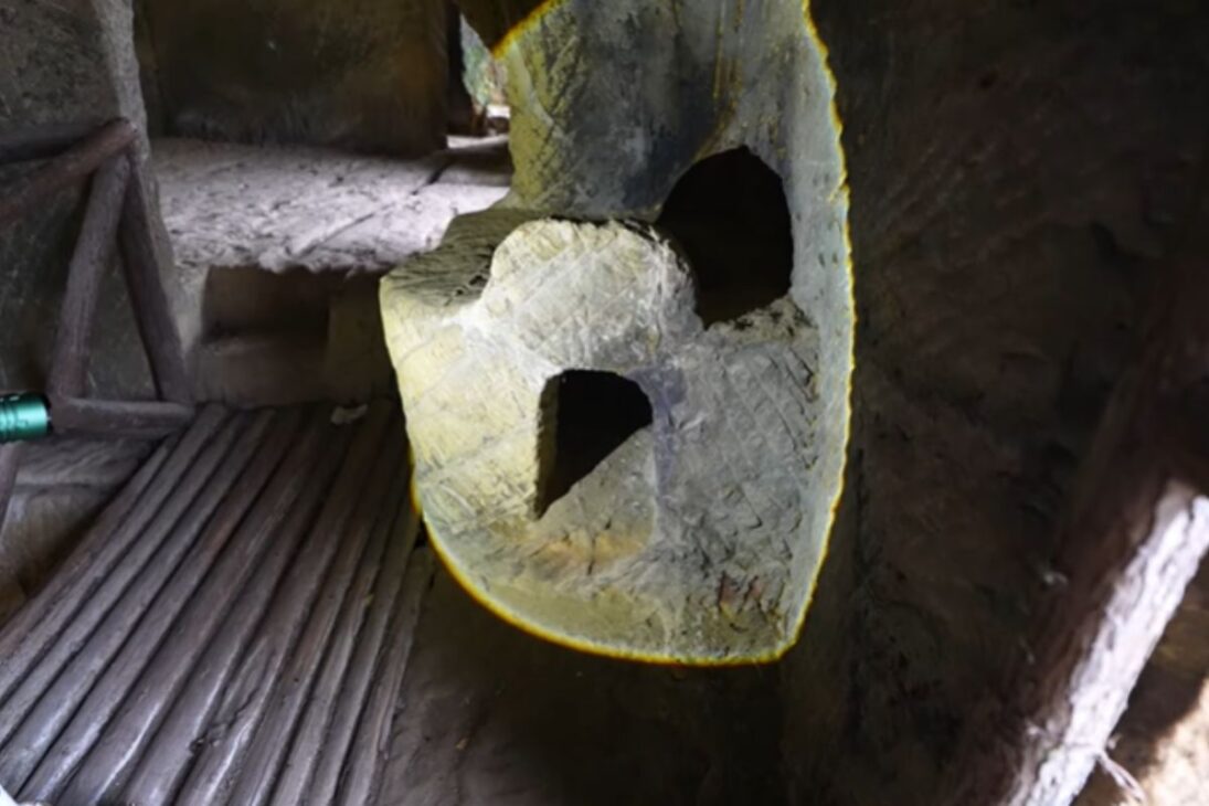 Uno de los elementos más intrigantes es un pozo grande y profundo en una de las cámaras. En el borde de este pozo hay ranuras horizontales que parecen hechas para sostener vigas transversales.