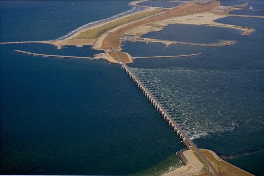 La Oosterscheldekering es una de las estructuras más emblemáticas del sistema. Con cerca de 9 kilómetros, utiliza comportas móviles que permanecen abiertas en condiciones normales y se cierran cuando el riesgo aumenta.