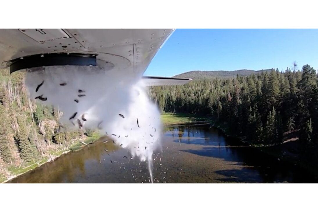 Los peces también llegan a lagos por acción directa de manejo ambiental y pesquero. En Utah, en 2021, agentes de vida silvestre lanzaron miles de peces en cerca de 200 lagos de alta altitud por avión, práctica utilizada desde 1956.