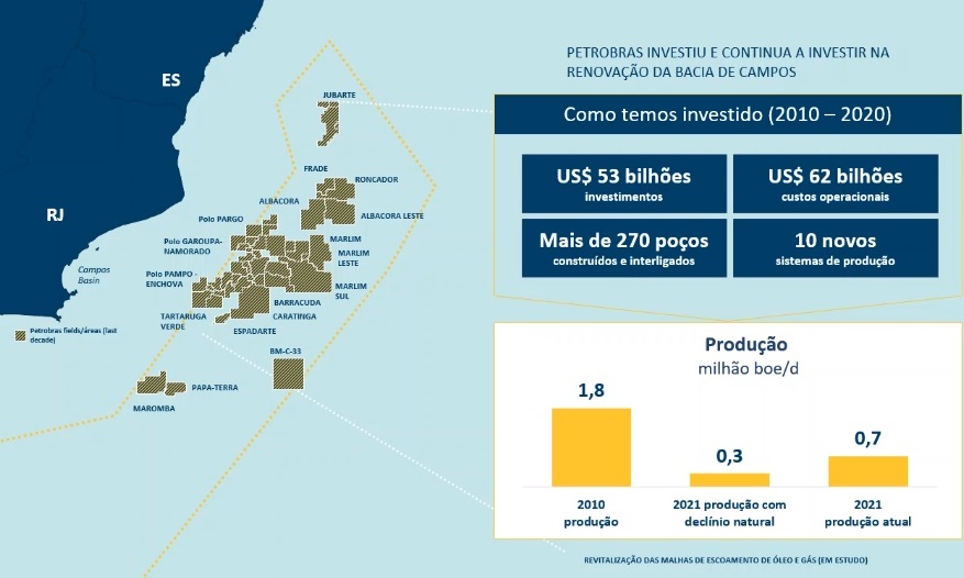 Entre 2021 y 2025, Petrobras prevé invertir US$ 13 mil millones en negocios en la Bacia de Campos, sobre todo para la revitalización de campos de petróleo. Al mismo tiempo, empresas que adquirieron campos en la región que eran operados por Petrobras han promovido una dinamización del sector de petróleo y gas y perspectivas de incremento en las economías locales. Al menos seis nuevas empresas han comenzado a operar en la región, con perspectivas de aumentar la producción. El aumento de la producción generará mayor retorno para la sociedad a través de tributos, regalías, participaciones especiales, empleos y dividendos. Según datos de la Federación de Industrias del Estado de Río de Janeiro (Firjan), cuatro de las empresas que compraron activos en la región ya han presentado planes de desarrollo que suman R$ 13,2 mil millones.