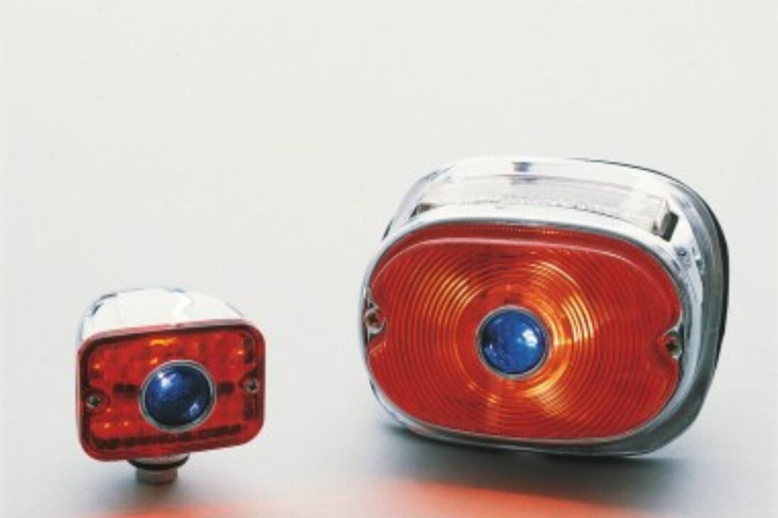 Detalle que aparece junto al rojo de la linterna de la moto, los puntos azules volvieron de las personalizaciones de EE. UU. de los años 1950 y ganaron fuerza en motos clásicas, incluyendo Harley Davidson. La lente azul crea un tono morado, pero la mezcla puede ser ilegal, simular emergencia y generar multa en algunos países.