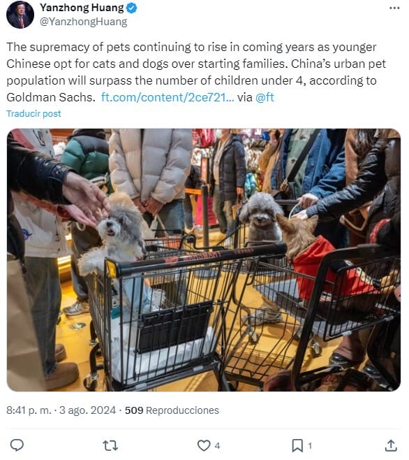 China Está Observando Una Inversión Demográfica: Más Mascotas Que Hijos. Este Fenómeno Refleja Cambios Profundos En La Sociedad China Y Abre Nuevas Oportunidades De Mercado