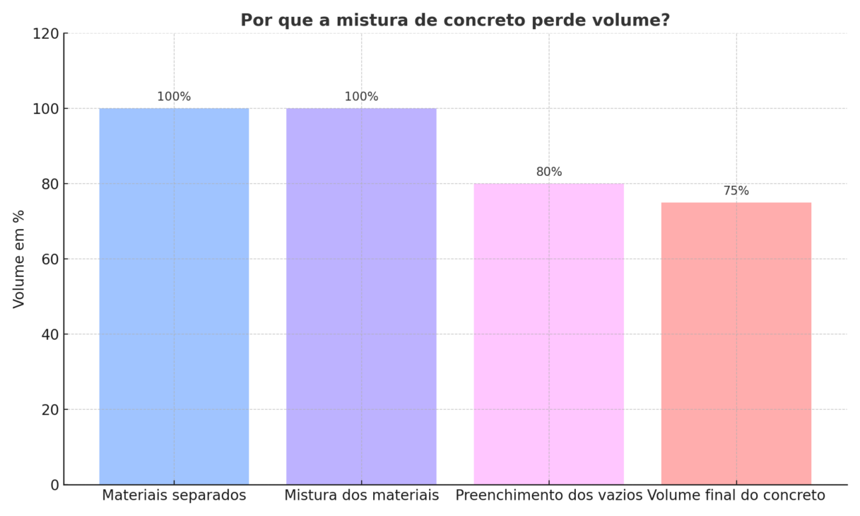 El concreto “se encoge” porque los materiales se ajustan mejor cuando se mezclan. Es como armar un rompecabezas: las piezas solas ocupan más espacio que cuando están organizadas. Por eso, la cantidad de grava y arena utilizada en la obra supera el volumen final de concreto.