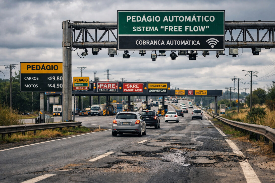 El avance del modelo free flow, que utiliza pórticos automáticos sin barreras, intensificó la sensación de “carretera cercada”. Actualmente, Brasil tiene cifras imprecisas sobre cuántos peajes existen en realidad. Las estimaciones varían entre 163 puntos listados por la ANTT en 2024, 441 puntos mencionados en artículos e incluso alrededor de 1.800 plazas y pórticos mencionados por parlamentarios, sin contar concesiones estatales y municipales.