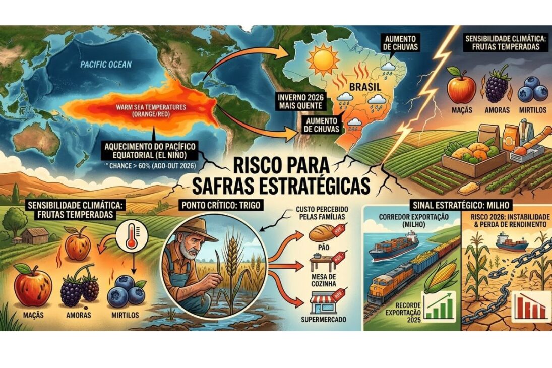En el caso del maíz, la señal es aún más estratégica. En 2025, el cultivo ganó protagonismo por el récord en exportación y por el peso que tiene en la alimentación y en cadenas productivas ligadas al mercado externo. Esto muestra cuánto la economía brasileña puede ganar cuando el clima favorece la producción. Pero también refuerza el lado opuesto: si 2026 trae inestabilidad mayor, commodities centrales para la exportación pueden perder rendimiento, encarecer operaciones y reducir parte del impulso esperado para la actividad económica.