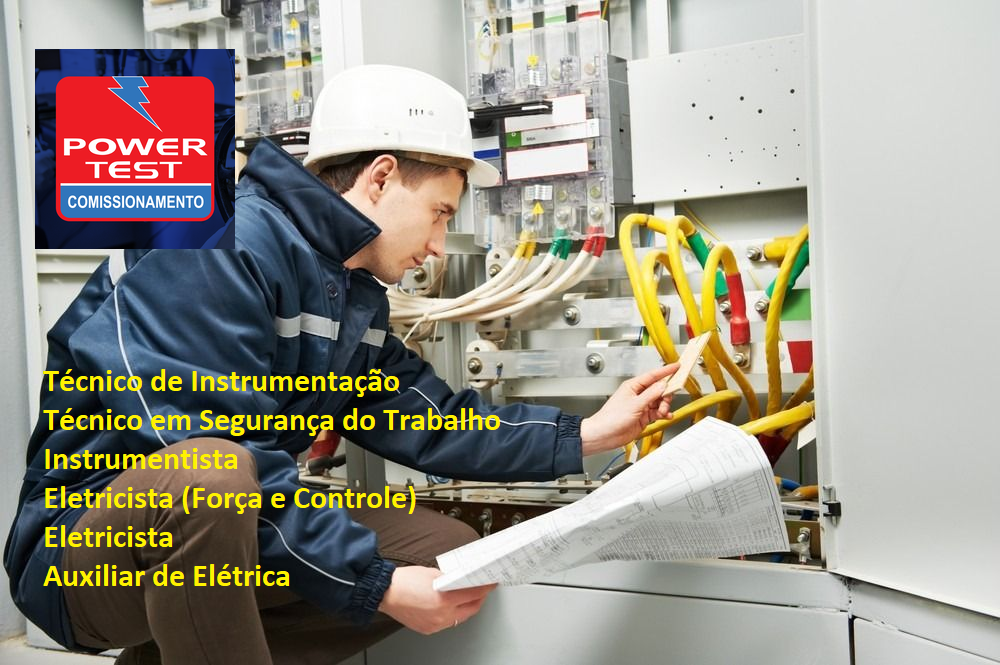 La empresa Power Test Comissionamento, anunció este lunes 17 de junio, a través de su vehículo oficial de noticias, el proceso selectivo para los cargos de Técnico de Instrumentación, Técnico en Seguridad del Trabajo, Instrumentista, Electricista (Fuerza y Control), Electricista y Auxiliar de Eléctrica. Para todas las funciones es necesario tener experiencia en el puesto comprobada en la cartera de trabajo.