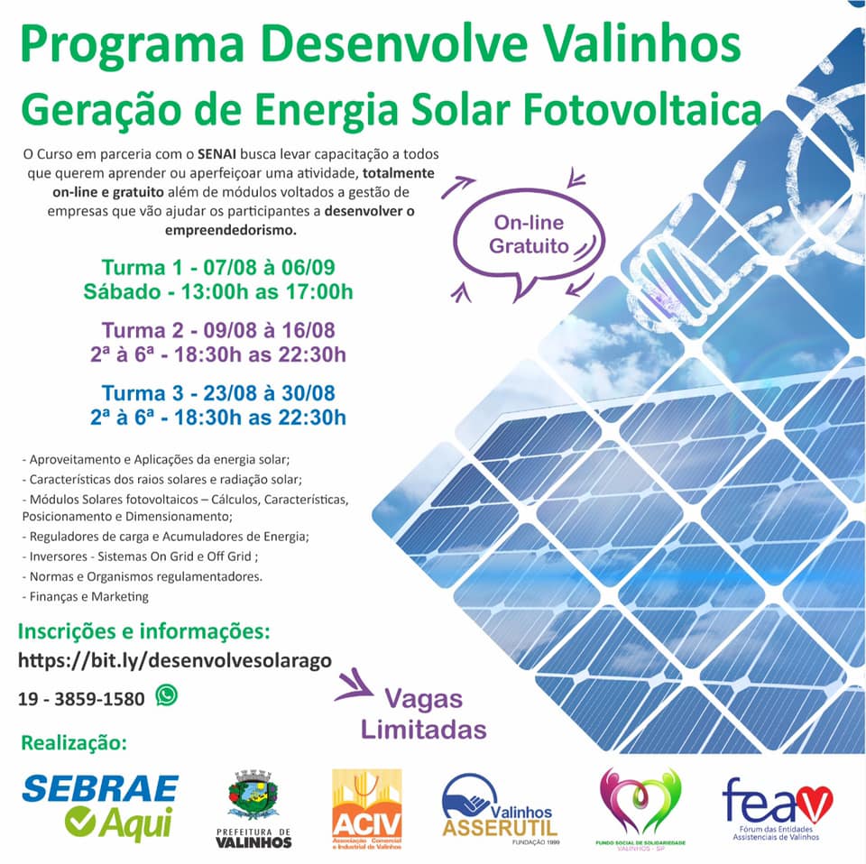 Cursos gratuitos Valinhos – Generación de energía solar fotovoltaica – créditos: Prefeitura de Valinhos -
