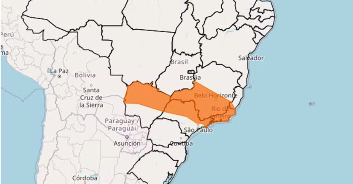 El Inmet emitió un alerta naranja, que indica riesgo moderado a alto de fenómenos meteorológicos intensos, válido desde la madrugada del sábado (19) hasta la mañana del domingo (20). La previsión del tiempo de São Paulo incluye áreas del norte del estado, donde la lluvia podrá causar trastornos significativos, así como parte de Río de Janeiro y la región central de Minas Gerais.