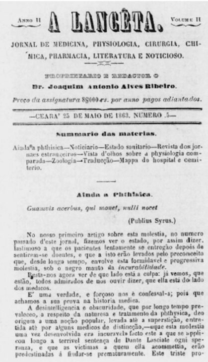 El médico también estuvo al frente de uno de los primeros periódicos de divulgación científica del Norte y Nordeste. Nacido en Icó, en 1830, permaneció olvidado durante décadas.